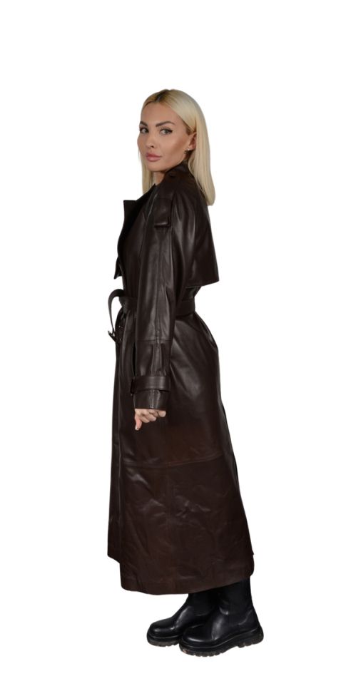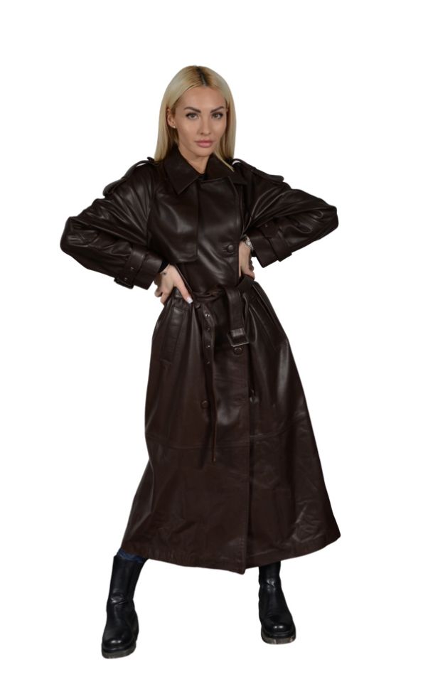 Това изискано дамско манто е изработено от висококачествена естествена агнешка кожа, която предлага мекота, топлина и луксозно усещане при носене. Моделът съчетава класическа елегантност с модерни детайли за свободен и стилен силует.